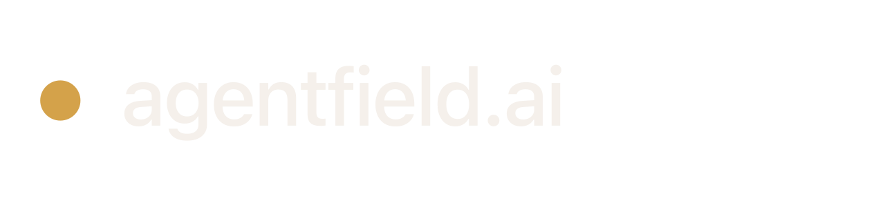 Full wordmarks read agentfield.ai. Colors follow the kernel palette: brand gold #d4a24a, brand soft #c28b2e on light surfaces, cream #f5f0eb or ink #0c0b09 for type. SVG is infinitely scalable; PNG exports use a transparent background (alpha) so they composite on any surface; EPS exports (text outlined to paths) are ready for print vendors. Every file includes equal clear space around the mark so it is centered with breathing room—drop it into decks, sites, or docs without extra padding. Pick a width or square size that matches your layout.