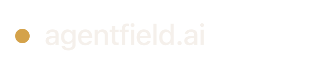 Full wordmarks read agentfield.ai. Colors follow the kernel palette: brand gold #d4a24a, brand soft #c28b2e on light surfaces, cream #f5f0eb or ink #0c0b09 for type. SVG is infinitely scalable; PNG exports use a transparent background (alpha) so they composite on any surface; EPS exports (text outlined to paths) are ready for print vendors. Every file includes equal clear space around the mark so it is centered with breathing room—drop it into decks, sites, or docs without extra padding. Pick a width or square size that matches your layout.